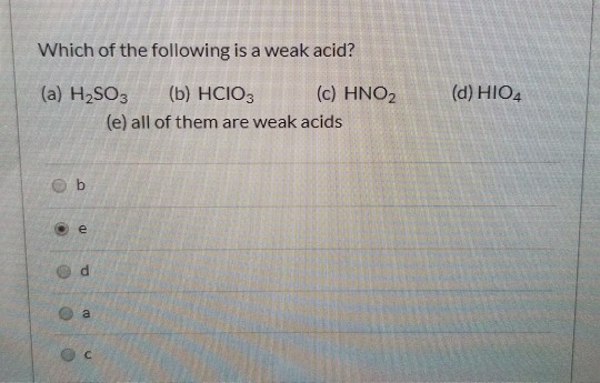 Which of the Following Is a Weak Acid Chegg