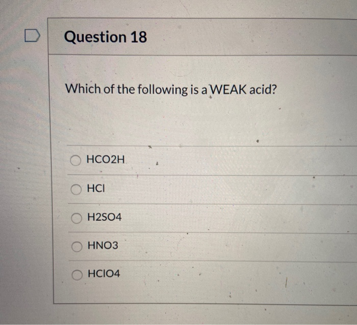 Solved Question 18 Which Of The Following Is A Weak Acid Chegg Com